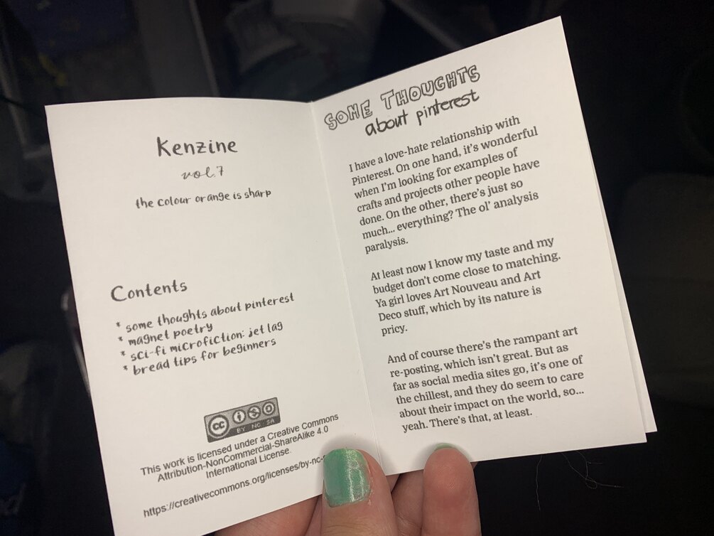 One of those one-sheet mini zines with 8 pages in it. This one features some poetry, some fiction, some thoughts, and some tips about bread.